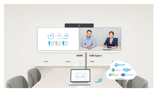 Hamedal C30内部芯片集成人脸检测、声源定位、语音追踪等多项技术,能通过最新的CNN网络对会议发言人进行识别追踪,并且能根据与会者的变化自动调整画面大小,呈现最佳取景效果。无需与会人员手动调节摄像头,让会议更高效。